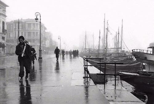 (Μια βροχερή μέρα του 1950 στη Θεσσαλονίκη.